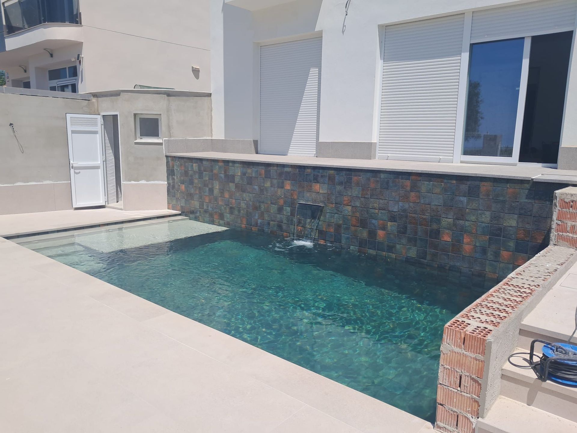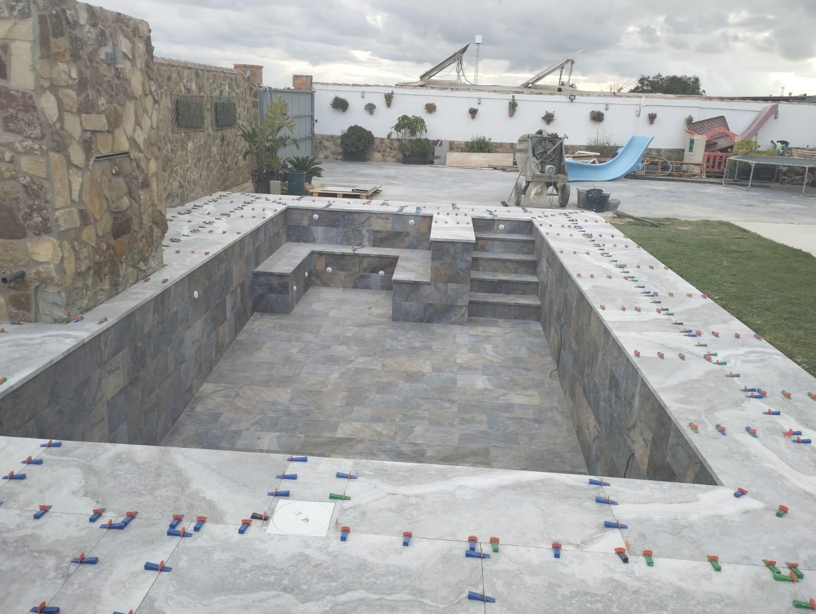 Una vez construida la estructura de la piscina, procedemos con el azulejado del interior de la misma. Este acabado no solo es estéticamente atractivo, sino que también ayuda a asegurar la impermeabilidad y durabilidad de la piscina. Ofrecemos una amplia gama de azulejos para que puedas elegir el diseño que mejor se adapte a tu estilo y al entorno de tu jardín o espacio exterior.
